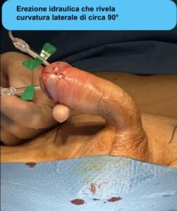 - impianto di protesi peniena, con o senza tecniche di raddrizzamento in presenza di disfunzione erettile concomitante e curvatura residua: le indicazioni alla protesi peniena sono curvatura >60 gradi associata a disfunzione erettile che non risponde alla farmacoterapia. Il rischio è di avere una complicanze necrosi del glande, inezione, deformità del pene, malfunzionamento del sistema protesico e possibile estrusione delle componenti